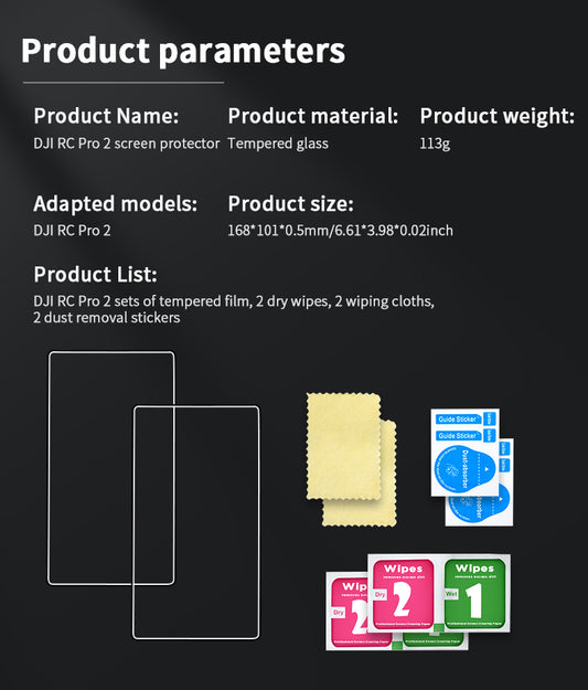 DJI RC PRO 2 Templeted Glass Screen Protector with Easy Applicator Tool (Pack of 2)